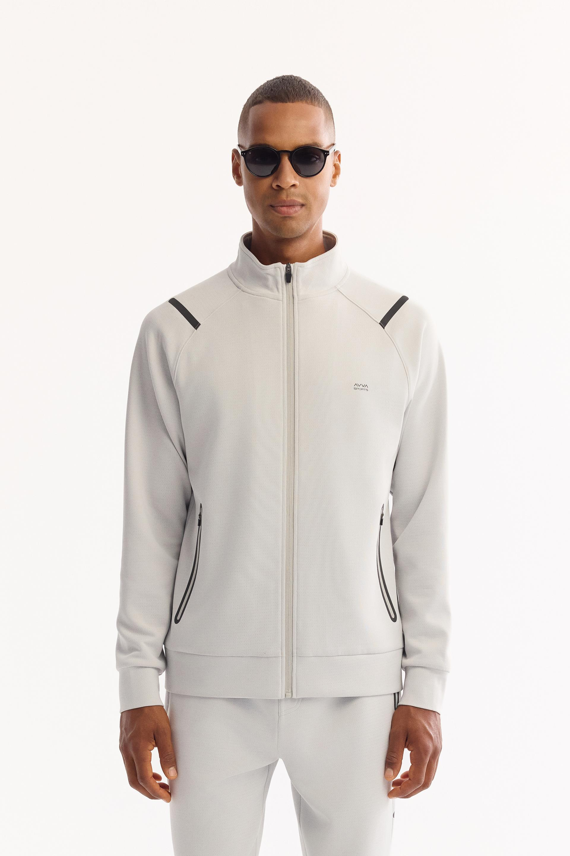 Dik Yaka, Fermuarlı, Teknik kumaş, Yandan cepli, Dokulu, Esnek, Regular fit Hırka