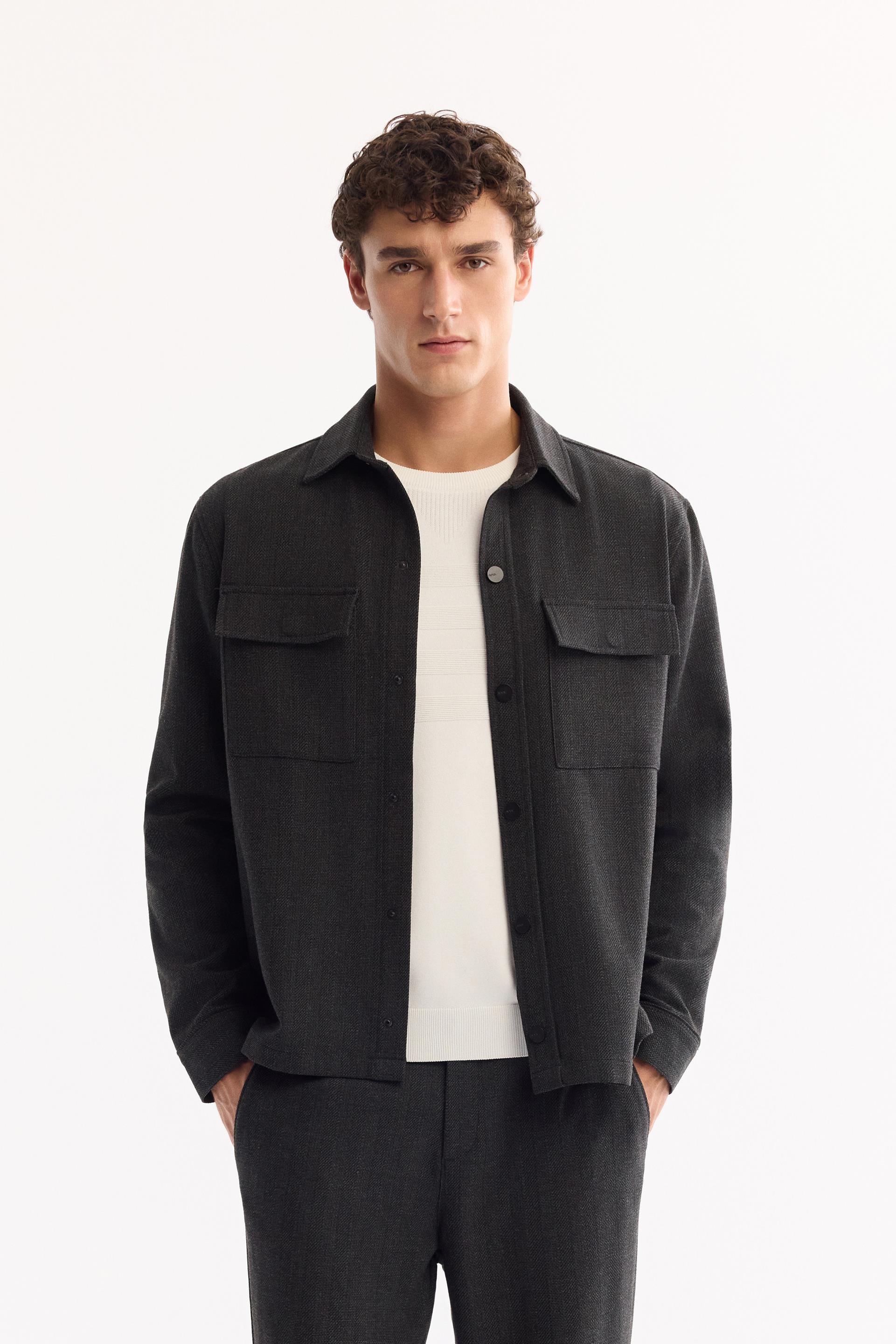 Klasik yaka, Uzun kollu, Çizgili, Örme kumaş, Önü çıtçıtlı cepli, Önü çıtçıt kapama, Kol uçları çıtçıt kapama, Comfort Fit Gömlek Ceket