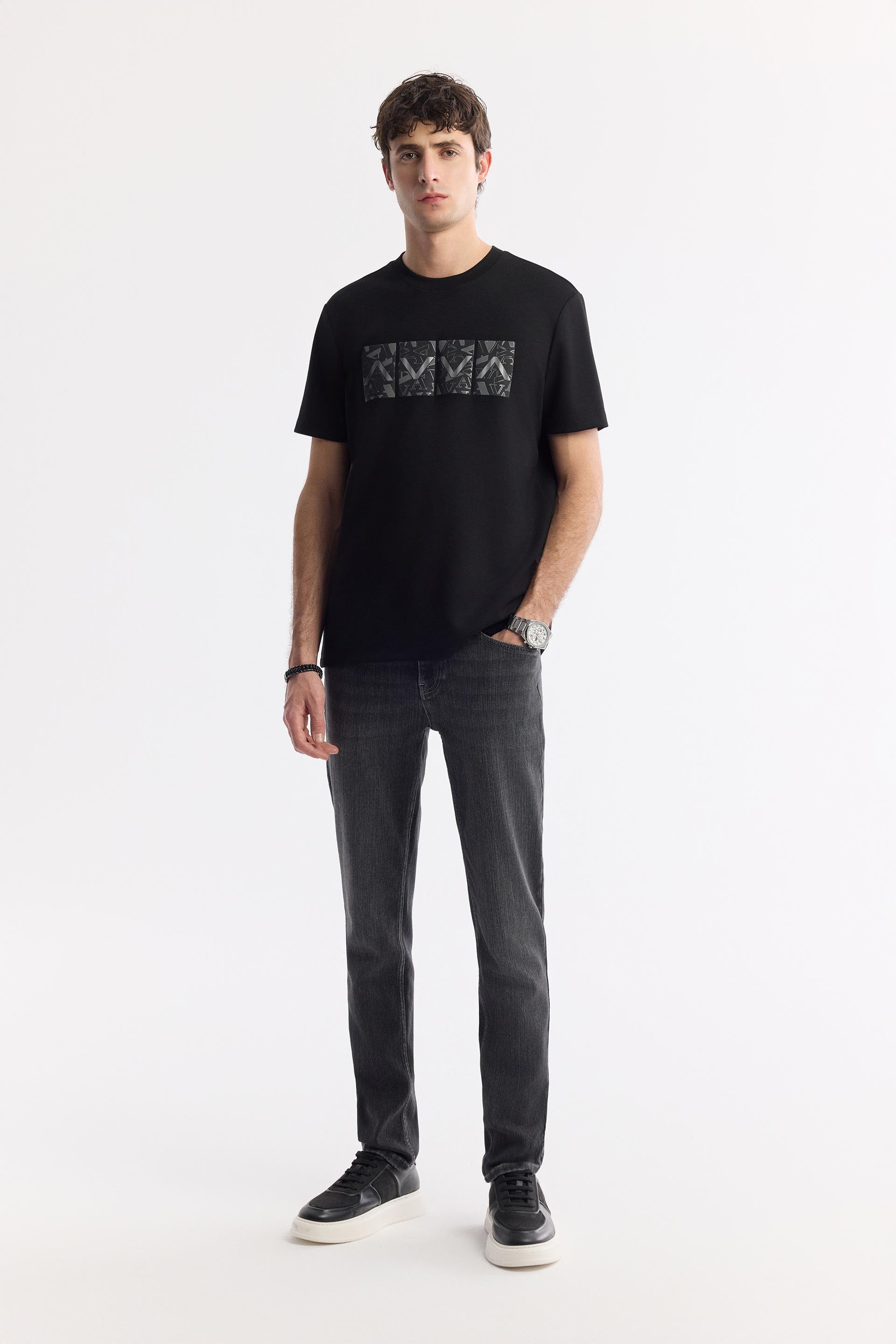 Taş yıkamalı, Pamuklu, Örme, Fermuar Kapama, Bozuk Para Cepli, Deri Görünümlü Branding Detaylı, Likralı Slim Fit Dar Kesim Jean Pantolon