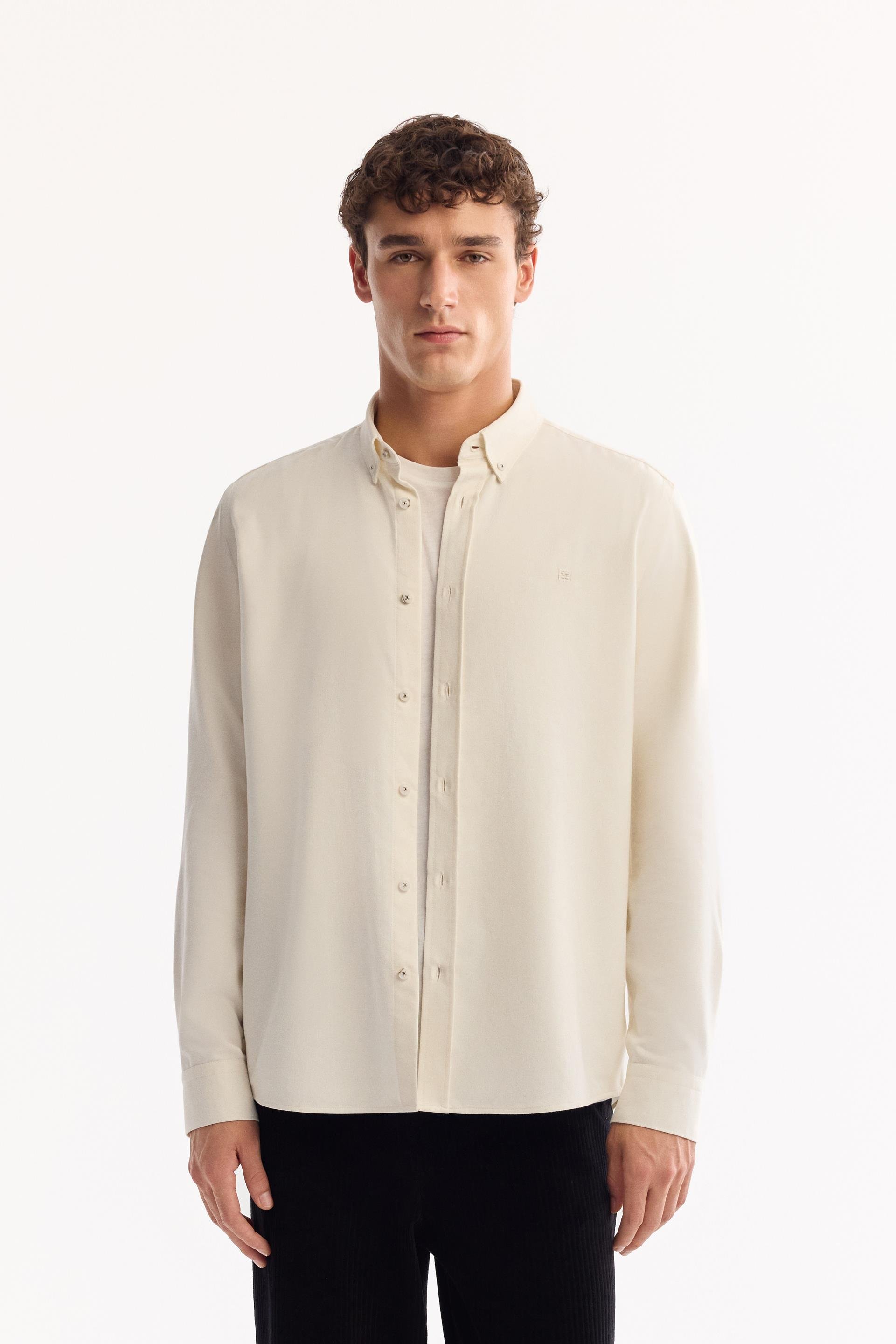 Ekru Düğmeli Yaka Pamuklu Uzun Kollu Regular Fit Gömlek