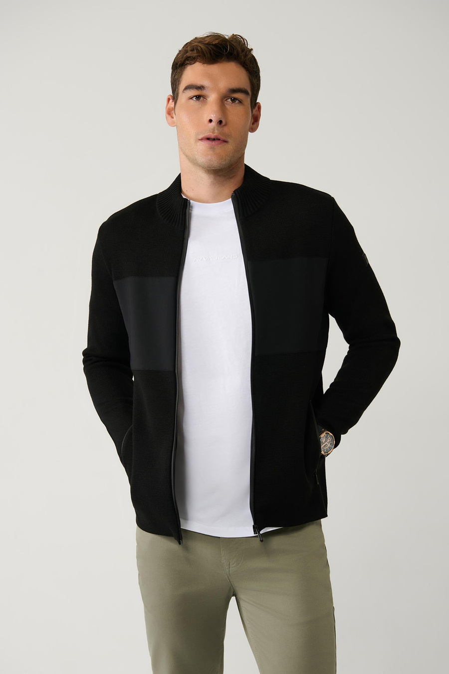 Black Wool Blend Zip Through Cardigan (A32Y6056-03)