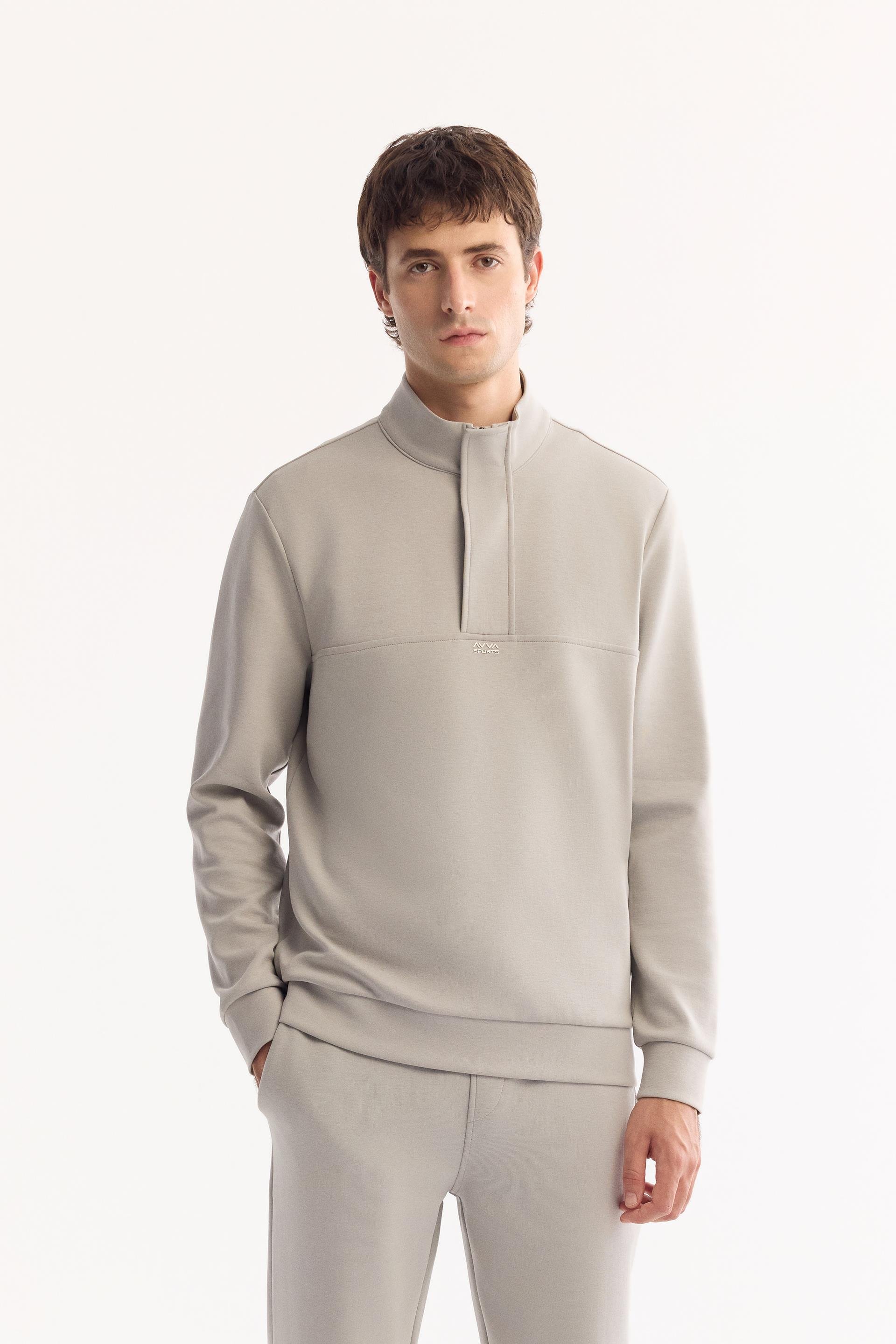 Fermuarlı Dik Yaka, İnterlok, Pamuklu, Uzun Kol, Kol ve etek ucu kendi kumaşından, Regular Fit Sweatshirt
