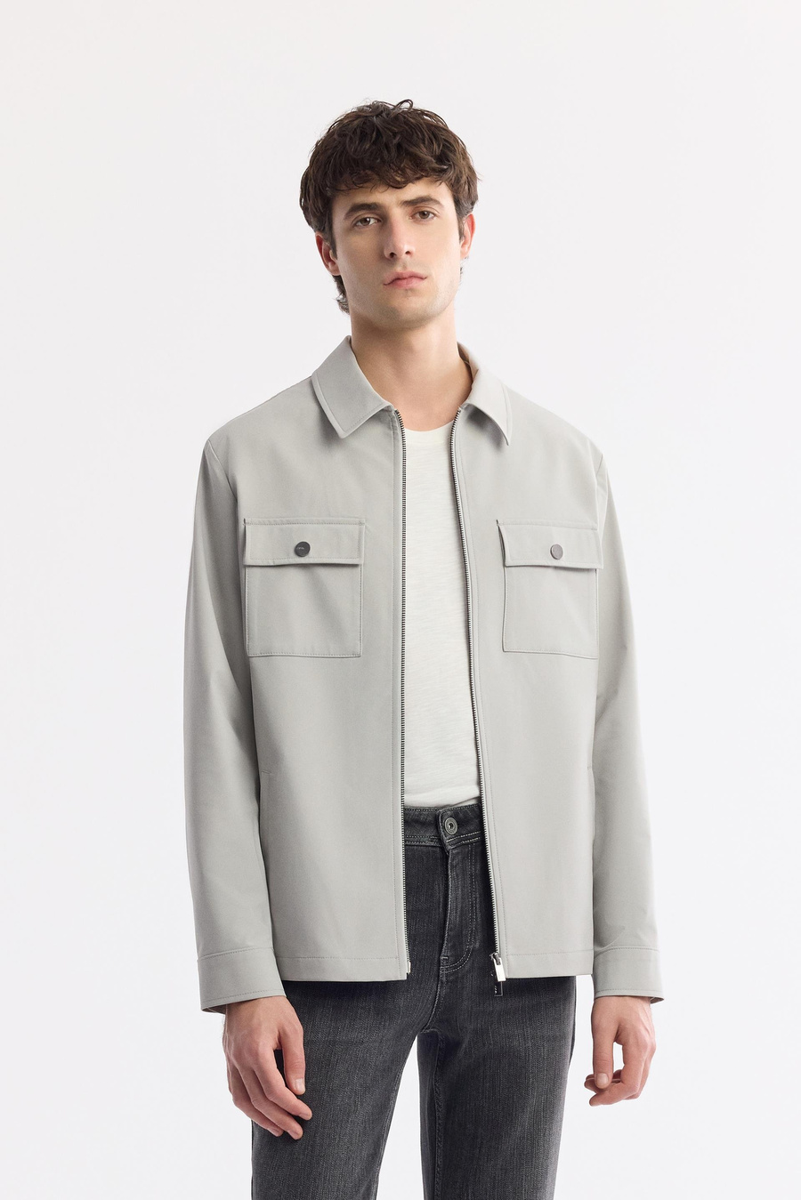 Mono yaka, Önden çift yönlü fermuar kapama, Göğüste çıtçıt ve kapaklı cepli, Yandan çıtçıtlı cepli, Kol uçları çıtçıt kapama, İçi yarım astarlı, Su itici, bi-stretch1, Esnek kumaş, Regular fit mont