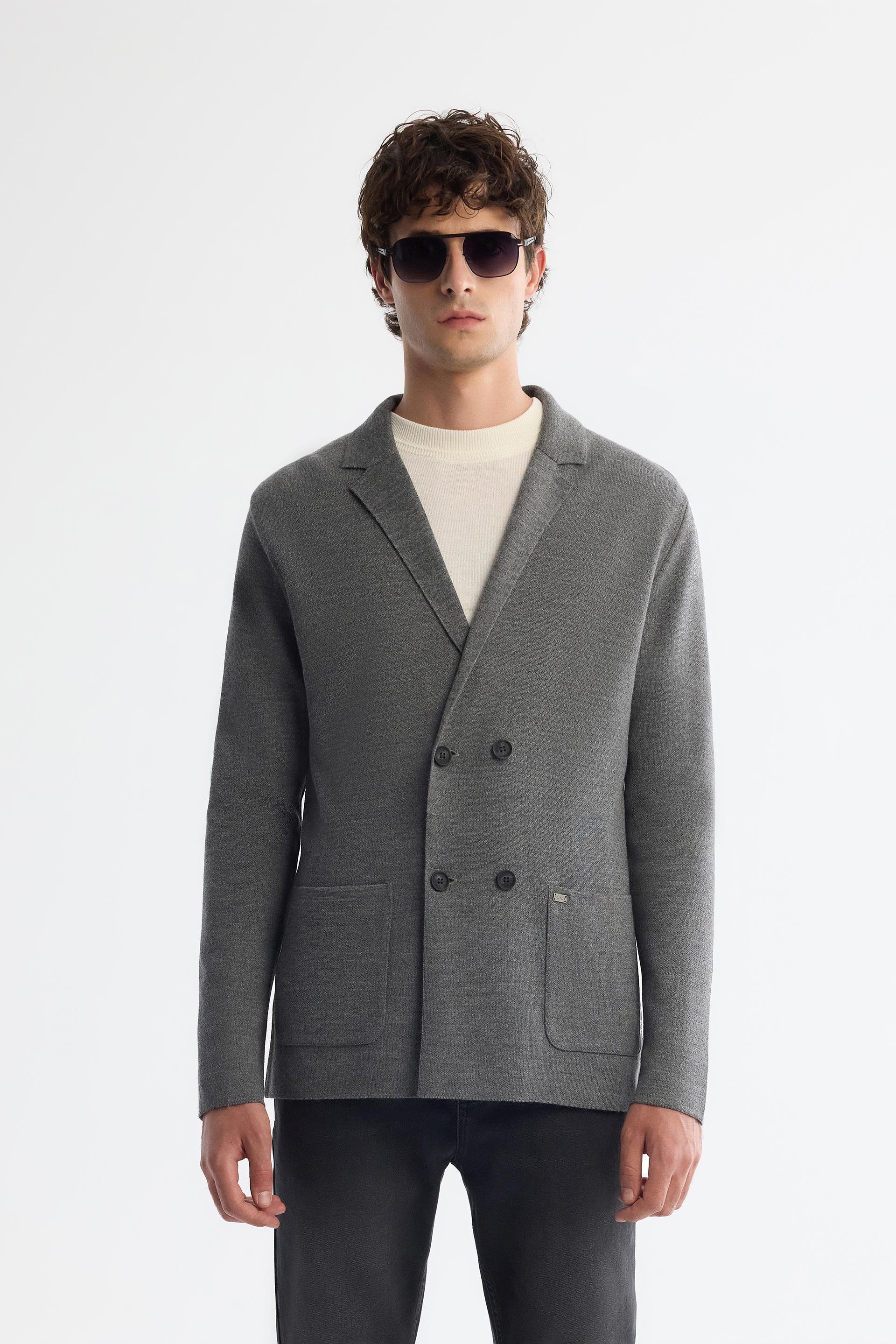 Mono yaka, Kruvaze, Torba cepli, Önden düğmeli, Yün Karışımlı, Sıcak tutan, Uzun kollu, Regular Fit Triko Hırka