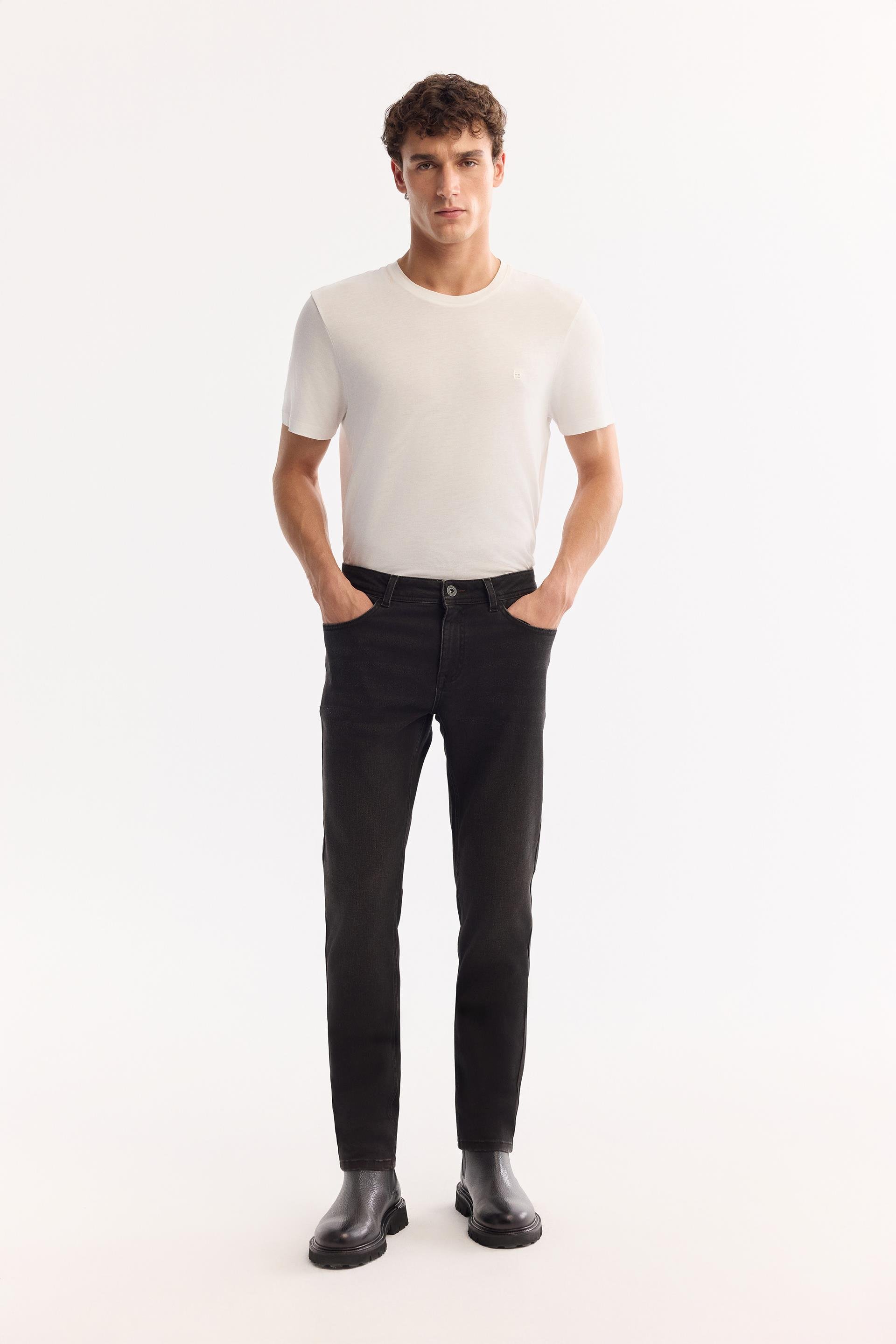 Eskitme yıkamalı, 5 Cepli, Fermuar ve düğme kapamalı, Branding detaylı, Pamuklu, Likralı, Slim Fit Non Denim Jean Pantolon