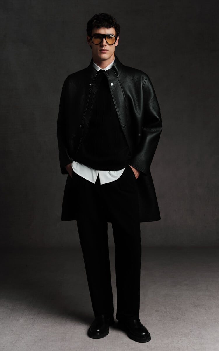 Siyah Dik Yaka Rüzgar Geçirmez Uzun Napa Kaban