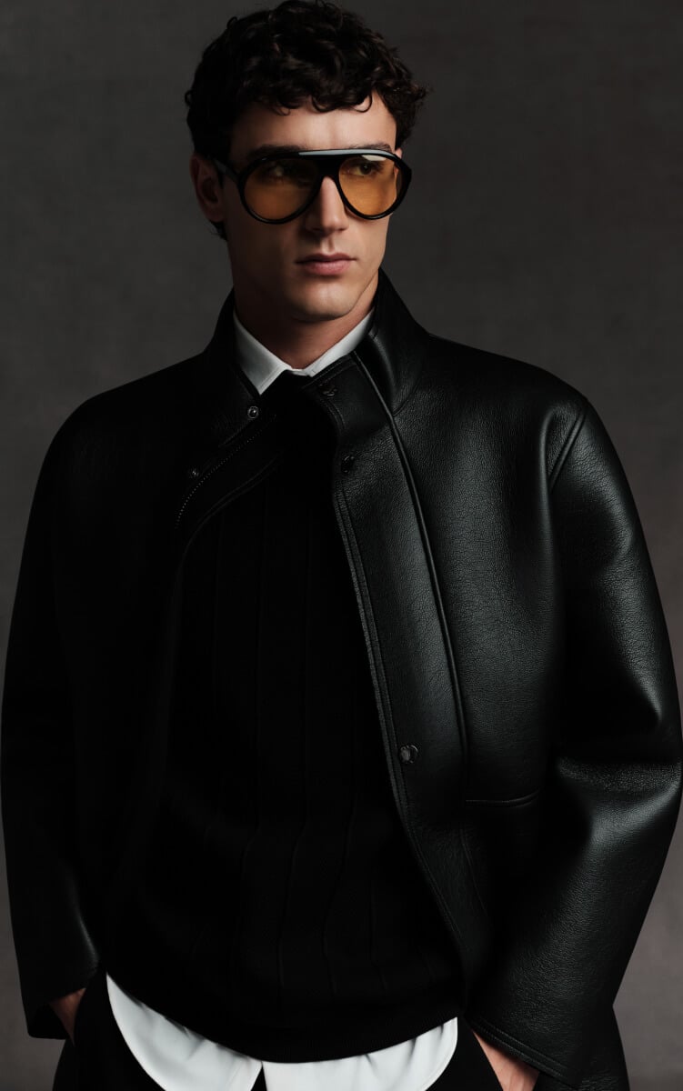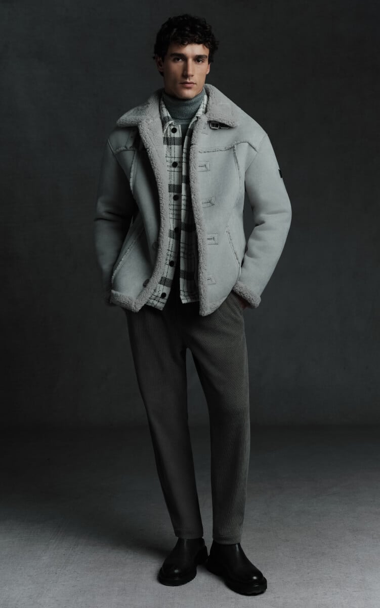 Siyah Kürklü Yaka Deri Görünümlü Napa Mont