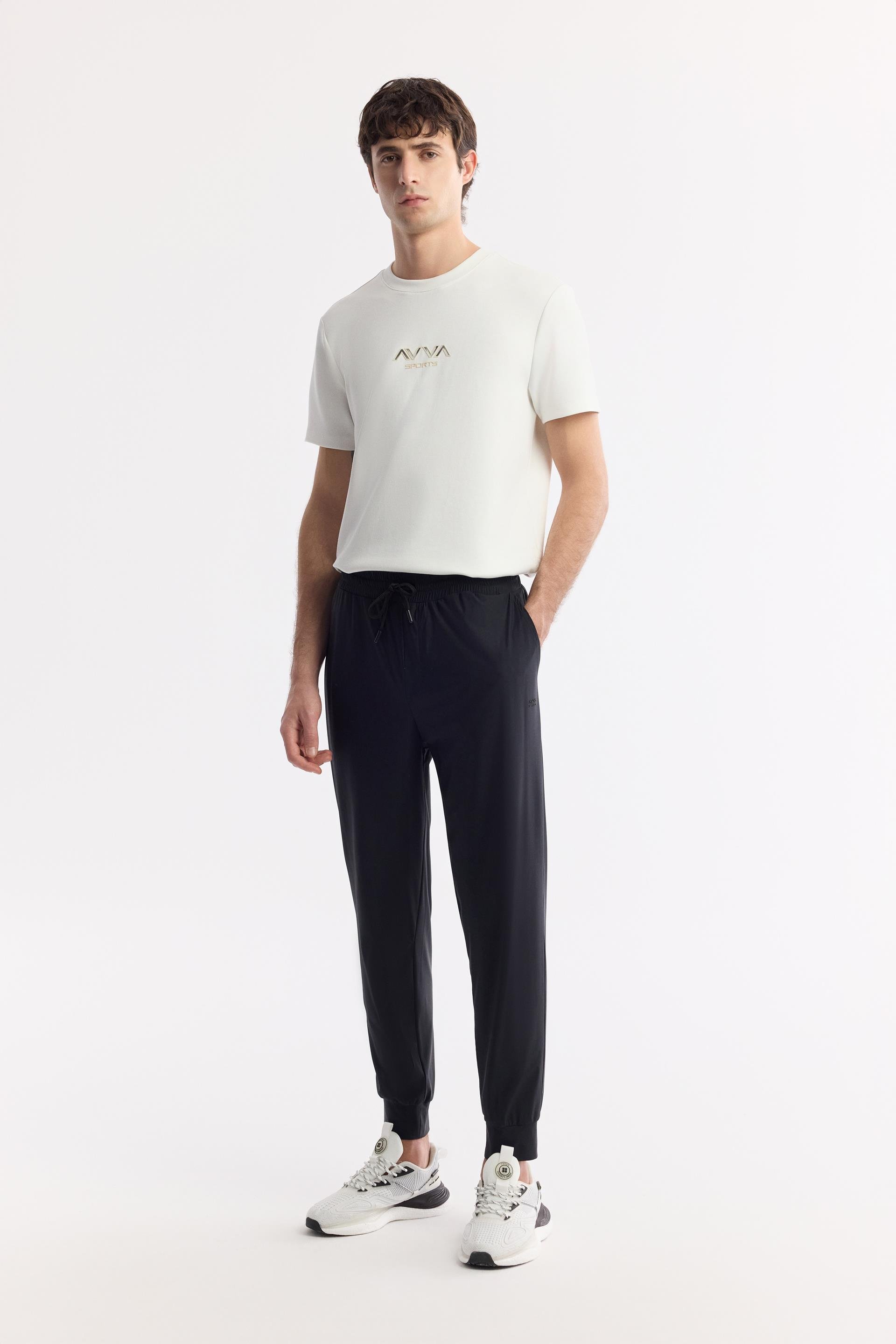 Siyah Beli Lastikli Bağcıklı Teknik Kumaş Eşofman Altı