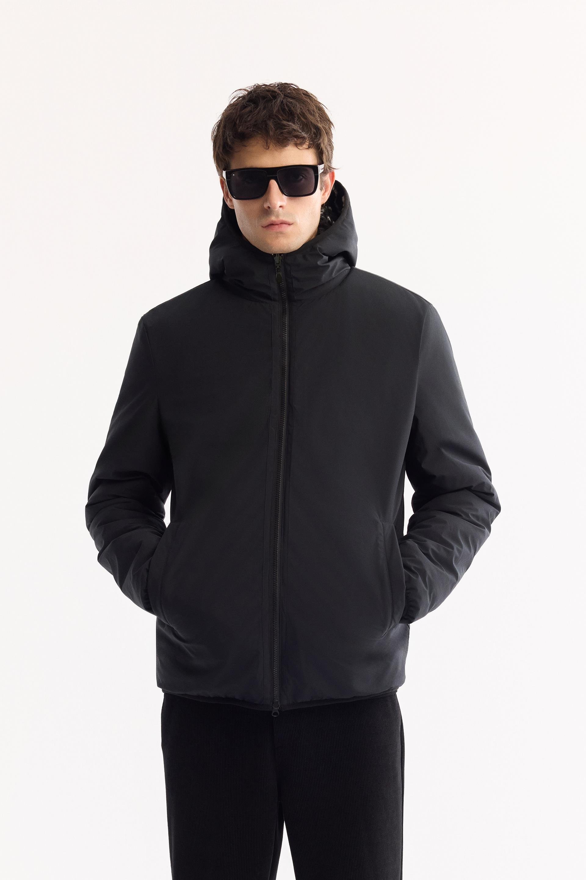 Kapüşonlu, Dik yaka, Rüzgar geçirmez, Sıcak tutar, Önden fermuar kapama, Çift Taraflı, Yandan çıtçıtlı cep, Desenli, Ragular Fit Peluş Mont